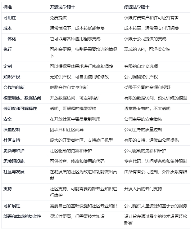 另一方面,閉源 LLM 提供現成的解決方案,并具有強大的支持和維護,這對于尋求簡化實施和供應商管理安全性的企業來說非常有價值。雖然它們成本較高且提供有限的定制,但對于缺乏管理開源模型資源的公司來說,它們通常更容易獲得。