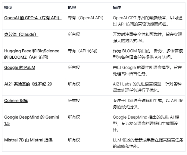 閉源 LLM 是源代碼不對外公開的語言模型。這些模型由組織或公司開發和維護,屬于專有,不對公眾開放。閉源 LLM 通常以商業產品的形式提供,使用閉源 LLM 往往需要許可證或訂閱。閉源 LLM 的架構、訓練數據和算法的細節通常不對外公開。
