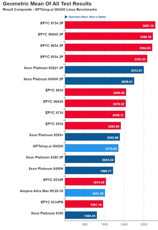 GH200 Grace CPU 的整體性能令人稱贊,在所有基準測試中都取得了可觀的幾何平均值。