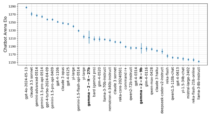 SOTA 模型 Gemma 2 所展示的進步在 AI 領域具有開創性意義。Gemma 2 的配置利用了 90 億和 270 億個參數,展示了性能、效率和關鍵安全性的提升。它可以與兩倍于其大小的模型相媲美,并且可以在單個 NVIDIA Tensor Core GPU 或 TPU 主機上經濟高效地運行,使更廣泛的開發人員和研究人員能夠使用高級 AI。Gemma 2 的開源性質、廣泛的培訓和技術增強凸顯了其卓越的性能,使其成為 AI 技術的關鍵發展。